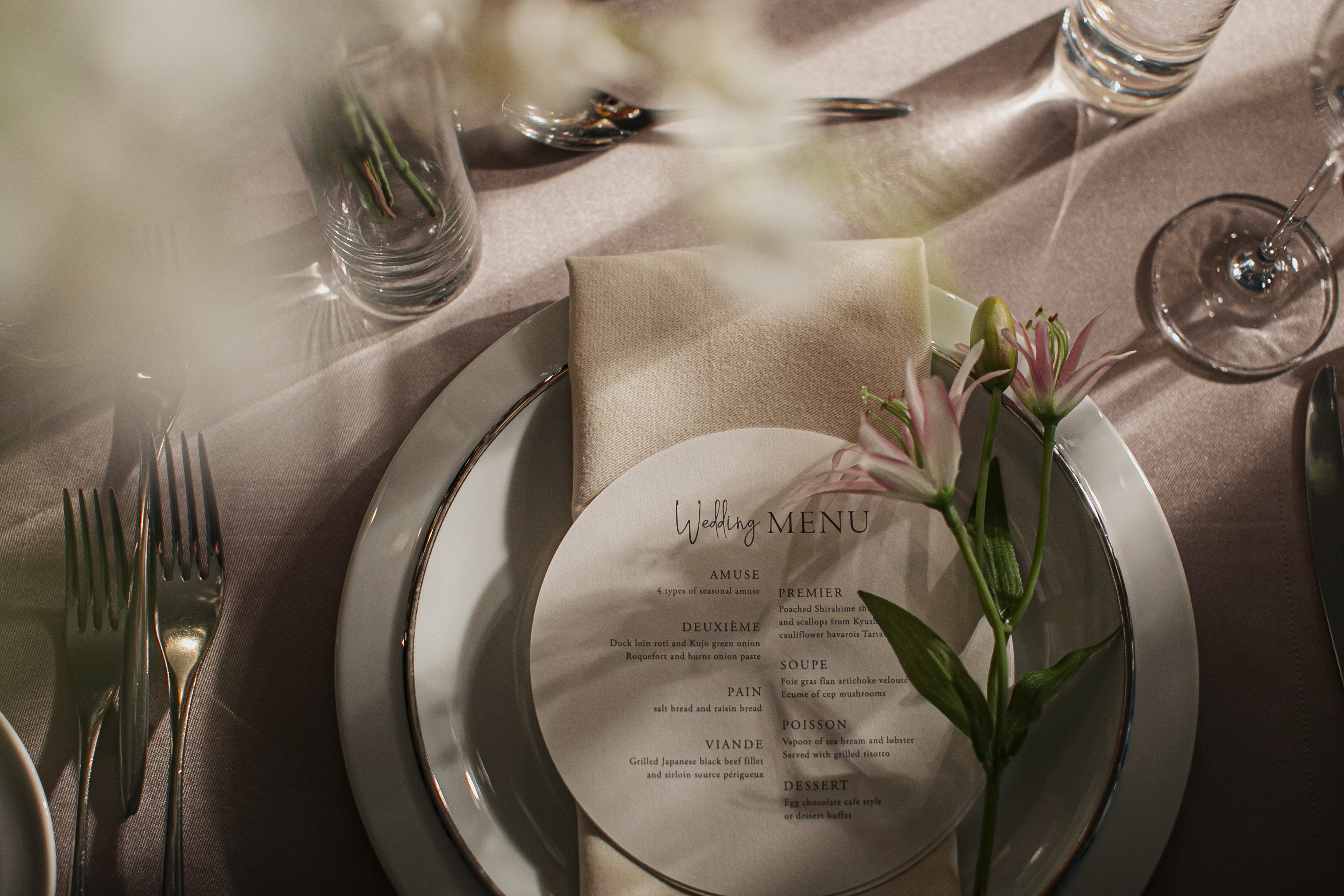 会場見学はもちろん、披露宴会場の入場体験や、極上フレンチの試食、結婚式準備やお見積りのご相談は ブライダルフェアで承っております。